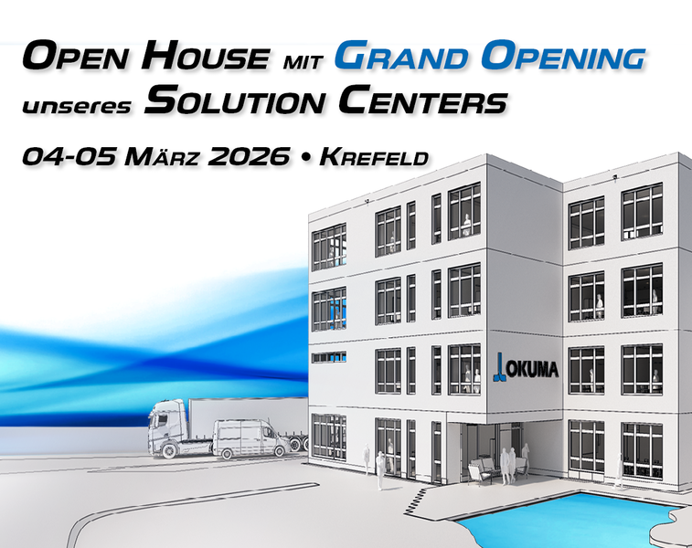 Das Open House 2026 findet am 4. und 5. März 2026 jeweils von 9 bis 17 Uhr in Krefeld statt, die Teilnahme ist gratis. Interessierte registrieren sich einfach unter openhouse.okuma.de und wählen ihre gewünschte geführte Tour (verfügbar in Deutsch und Englisch) aus, um exklusive Einblicke in die aktuellen Okuma-Lösungen sowie in das neue Solution Center, zentrale Anlaufstelle für Innovation, Automatisierung und modernste Fertigungstechnologien, zu erhalten.